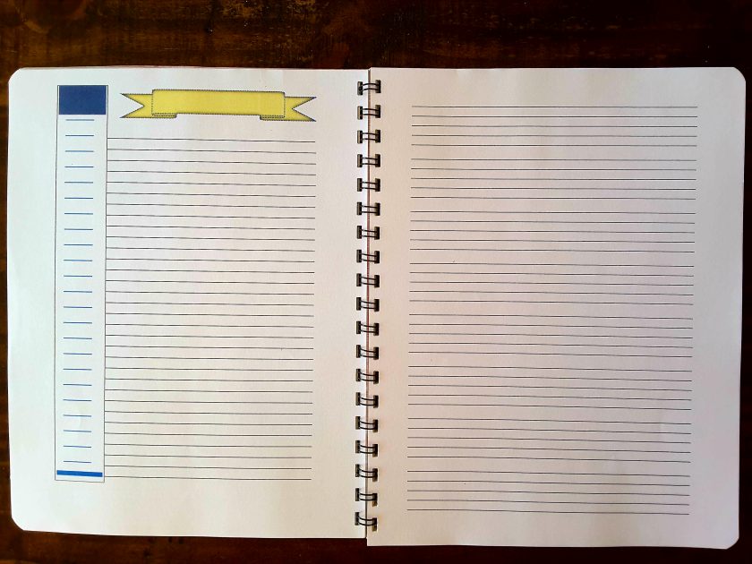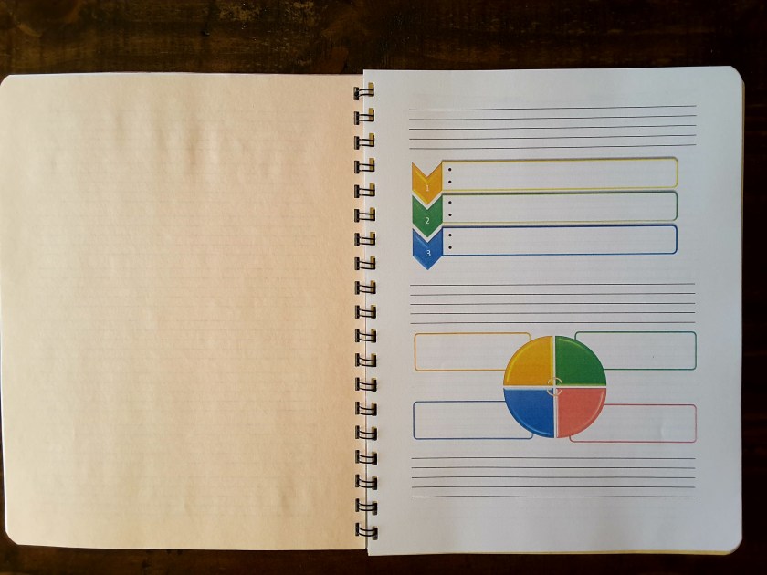 More of our unique selection of journals. This one is 8.5 X 11 inches in size and as you can see in the pctures has a wonderful selection of a variety of paper types. This spiral bound journal gives you so many options in one package! Brainstorming, project planning, meeting notes, mind mapping, idea association, manual spreadsheets, regular lined paper, grapg paprr, the list could go on and on…… Think of the ways your imagination could stretch and grow using this notebook! Visit our Etsy site to purchase one today!