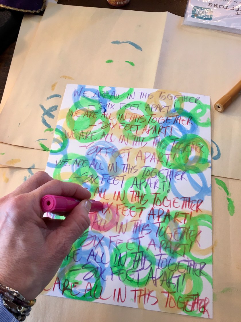 Below are pics showing the stages of the creation of my “In This 2gether, 6 Feet Apart” mixed media journal listed on Etsy. The idea, of course, was inspired by the fact that despite social distancing and shelter at home rules, our world can still demonstrate a sense of togetherness in order to get through this ordeal.